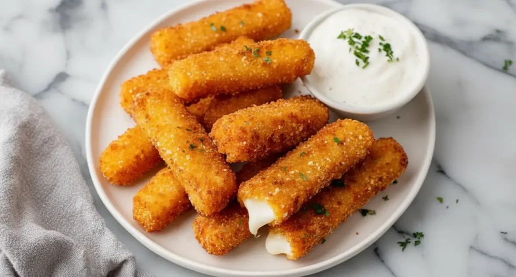 Once breaded, the sticks are usually chilled briefly to help them hold their shape during cooking. Then, they go into the air fryer, where hot air circulates evenly around them. In just a few minutes, they transform into golden, crispy mozzarella sticks with a beautifully melted center.